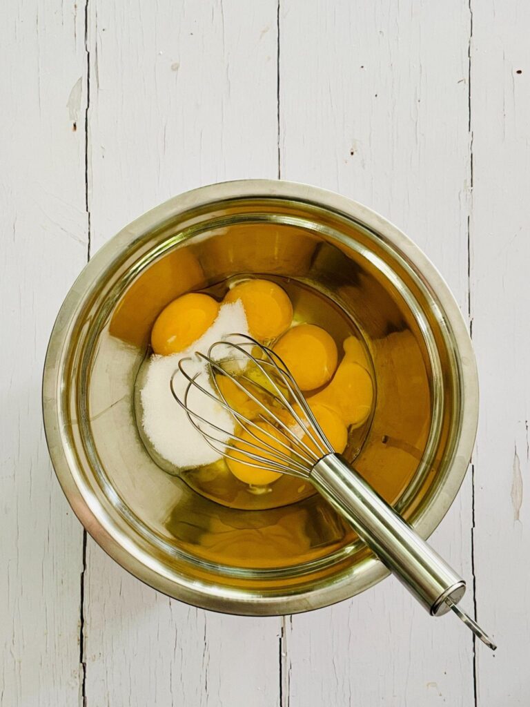 2. Place eggs, egg yolks and sugar in a heatproof bowl. Place bowl over a saucepan of simmering water over low heat