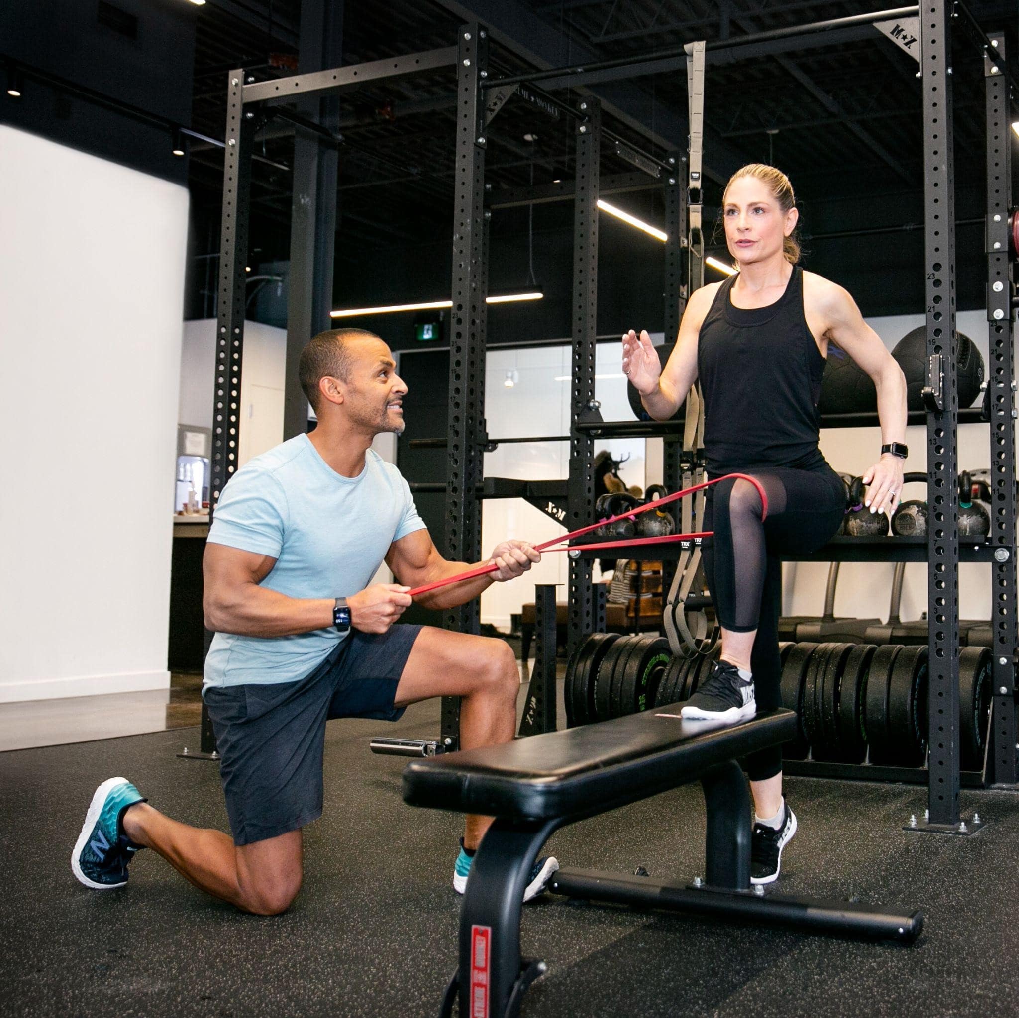 One key element to improving overall strength, pelvic stability, and injury prevention is to ensure glute activation and hip strength are a focus. Adding some directional resistance to a standard step-up is an effective way to ensure the glutes are effectively integrated into the exercise. Strong glutes will transfer to improved posture and pelvic stability, which can also improve functional power and reduce injury risk down the kinetic chain from the low back to the feet.